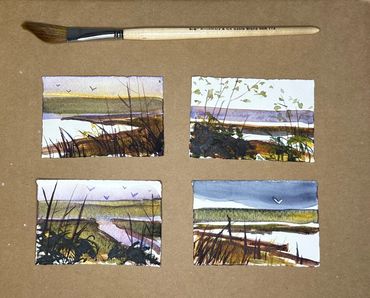These Tonalist paintings were made with watercolor and gouache on archival paper using the direct painting method with little or no line drawing in the execution.