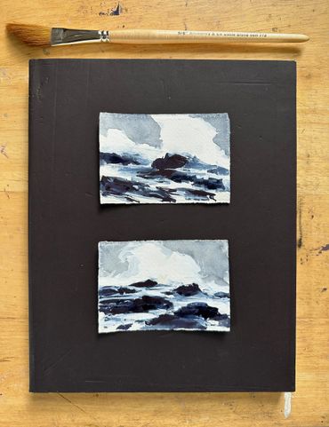 This plein air series was inspired by watching the huge waves crashing as a nor'easter swept out to sea at the Nubble Lighthouse in Cape Neddick, Maine.
